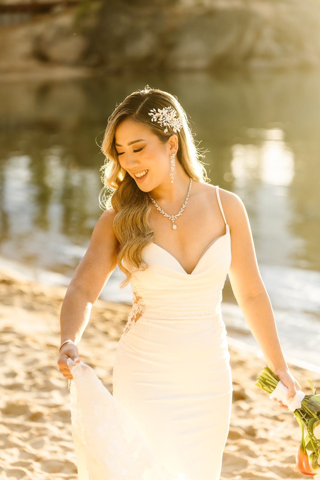 Christine and Tracy spent the last part of their day enjoying the sunset, climbing over the rocks, and soaking in that just-married joy. The sky turned soft and golden, and the lake gave us the prettiest reflection. It was the perfect ending before they headed off to their dinner reservation.