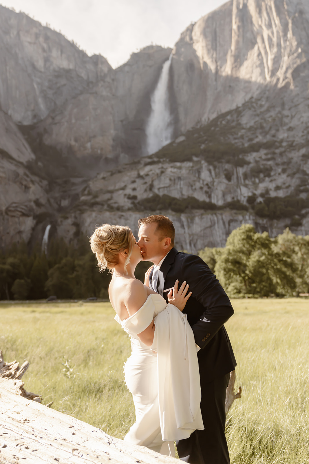 We spent the first part of their elopement exploring the Yosemite Valley floor. Wide open meadows, towering granite walls, and classic valley views made for an incredible start to the day. This is one of my favorite ways to photograph elopements in Yosemite.